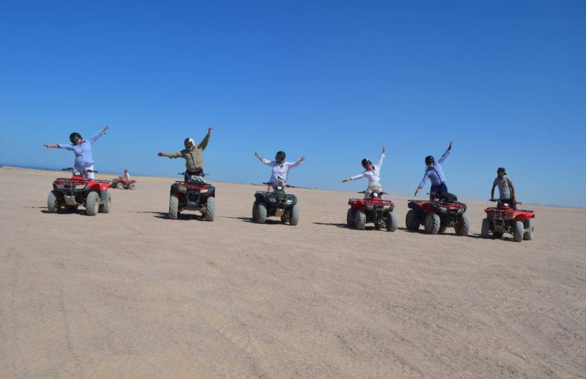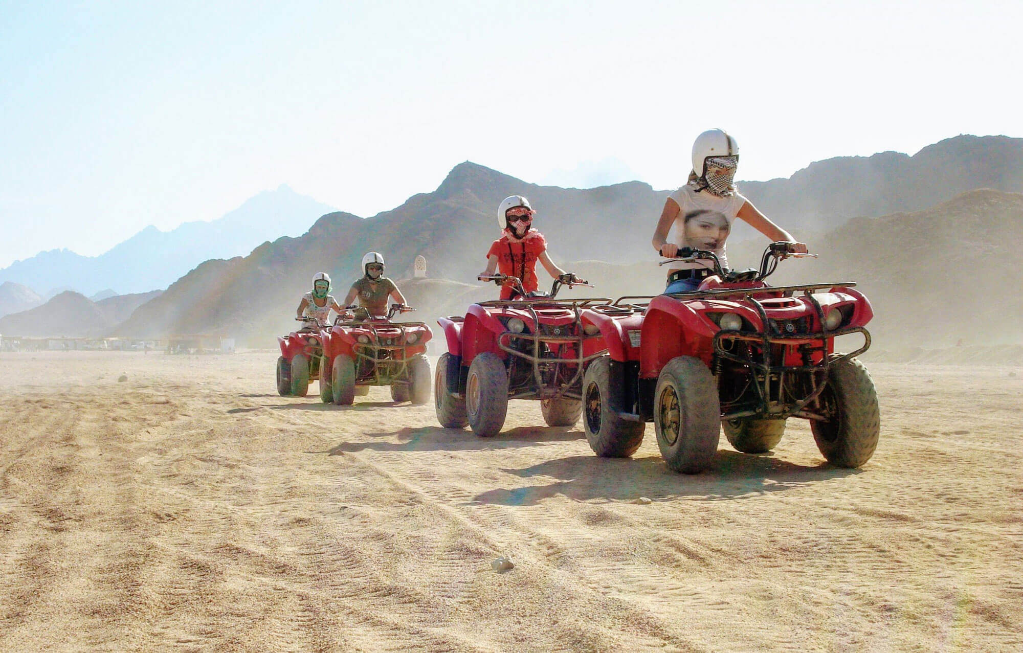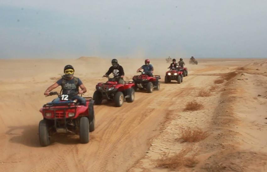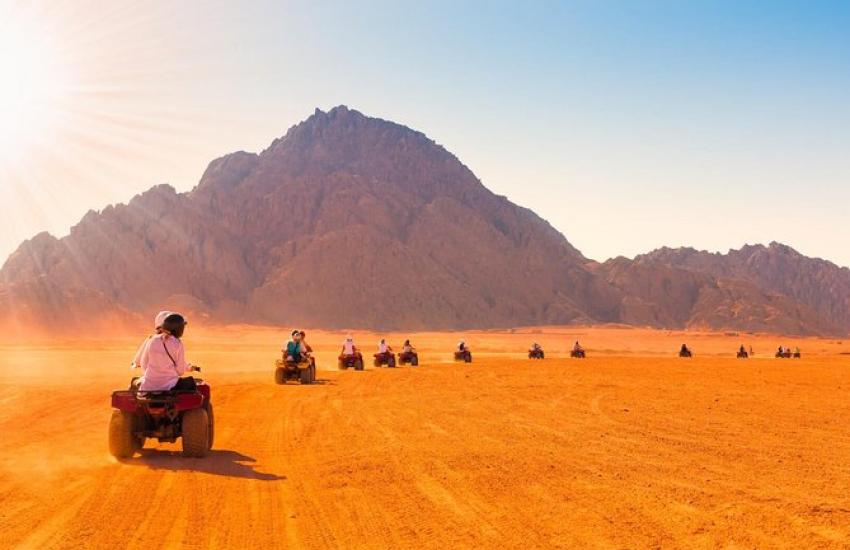 - An unforgettable experience, Prepare for an exciting and adrenaline-fueled experience. Embark on a quad bike safari through the captivating landscapes of the Egyptian desert, Hop on our off-road quads and embark on an adventure, exploring off-road trails and discovering breathtaking panoramas, Let the power of the engine propel you across the golden sand dunes as you experience the thrill of speed and the excitement of the unknown.