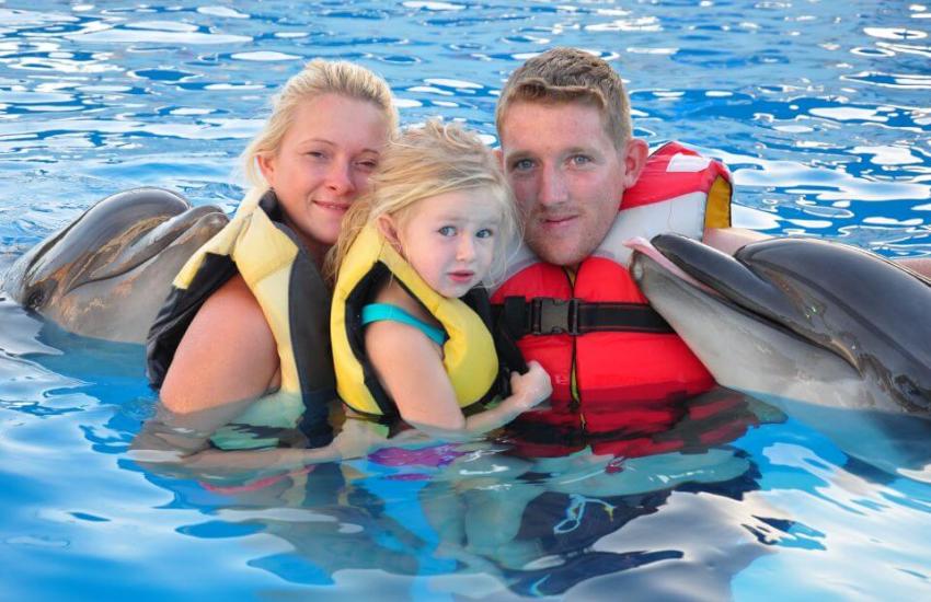 - Included Swimming with dolphins for 5 or 10 minutes (based on selected option).