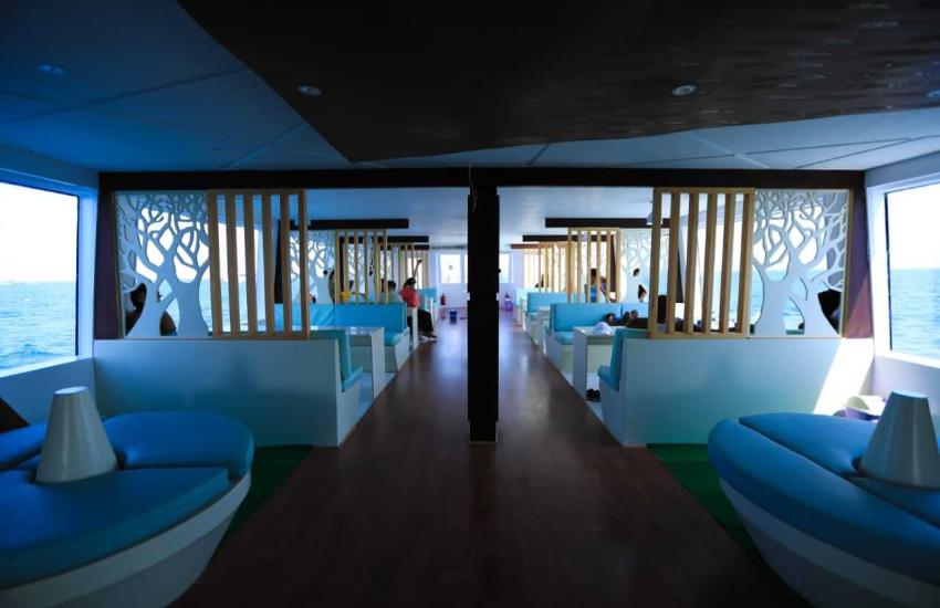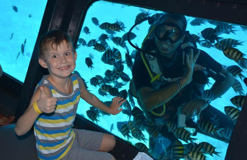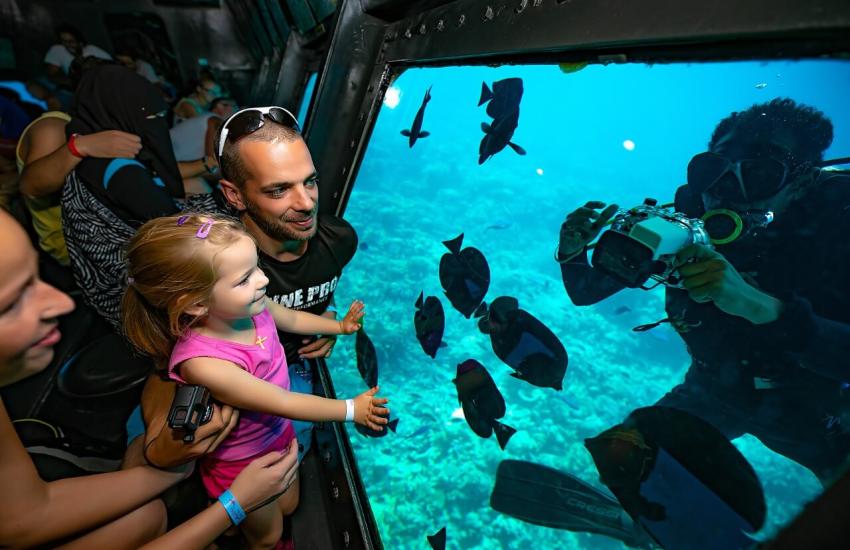 - Enjoy air-conditioned comfort as you admire the vibrant marine life and coral reefs through large panoramic windows.
