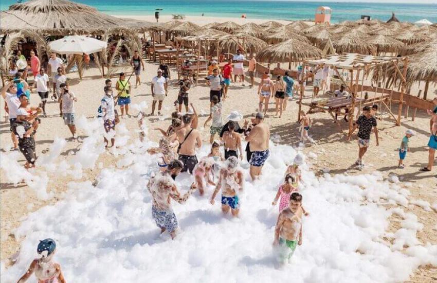 - Wolny czas na wyspie: Około 1,5–2 godziny relaksu z leżakami, hamakami, huśtawkami w wodzie i zacienionymi miejscami. Dodatkowo możliwość gry w siatkówkę plażową lub sportów wodnych.